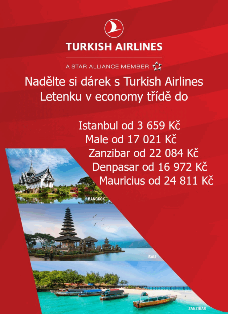Přestaňte se trápit výběrem dárků a darujte svým blízkým něco nezapomenutelného – letenky do exotiky! S Turkish Airlines teď seženete letenky do nejkrásnějších destinací za skvělé ceny. Darujte slunce, pláže a dobrodružství.